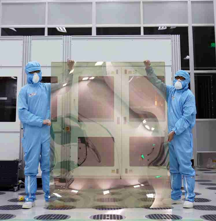 尊龙z6昆山厂第六代 LTPS (低温多晶硅) 生产的玻璃基板尺寸为 1500x1850 mm (毫米)